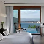 Les unités douillettes comprennent un balcon et un vestiaire, meublée des fenêtres insonorisées, et certaines d'entre elles font face au patio. Équipées d'un minibar, les chambres sont également équipées d'un bureau. Equipées d'une baignoire spa et d'une douche à l'italienne, les salles de bains en marbre offrent des peignoirs de bain. Certaines chambres donnent sur la baie d'Argolic.